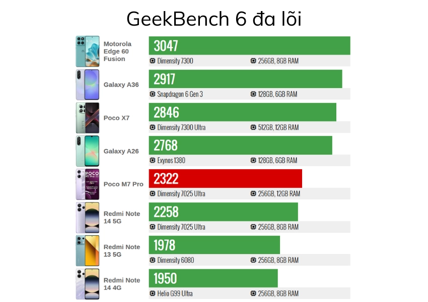 Đánh giá chung: POCO M7 Pro 5G là sự lựa chọn tuyệt vời cho những ai cần một chiếc máy “ngon – bổ – rẻ”, cân bằng tốt giữa hiệu năng chơi game và khả năng hiển thị đẹp mắt.