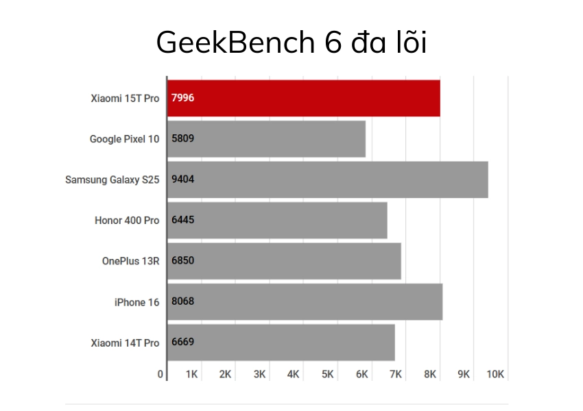 Trái tim của Xiaomi 15T Pro là con chip MediaTek Dimensity 9400+ được sản xuất trên tiến trình 3nm. Qua các bài kiểm tra thực tế:
